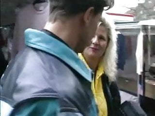 Reife Schlampe in Strapsen setzt sich auf einen jungen Hintern